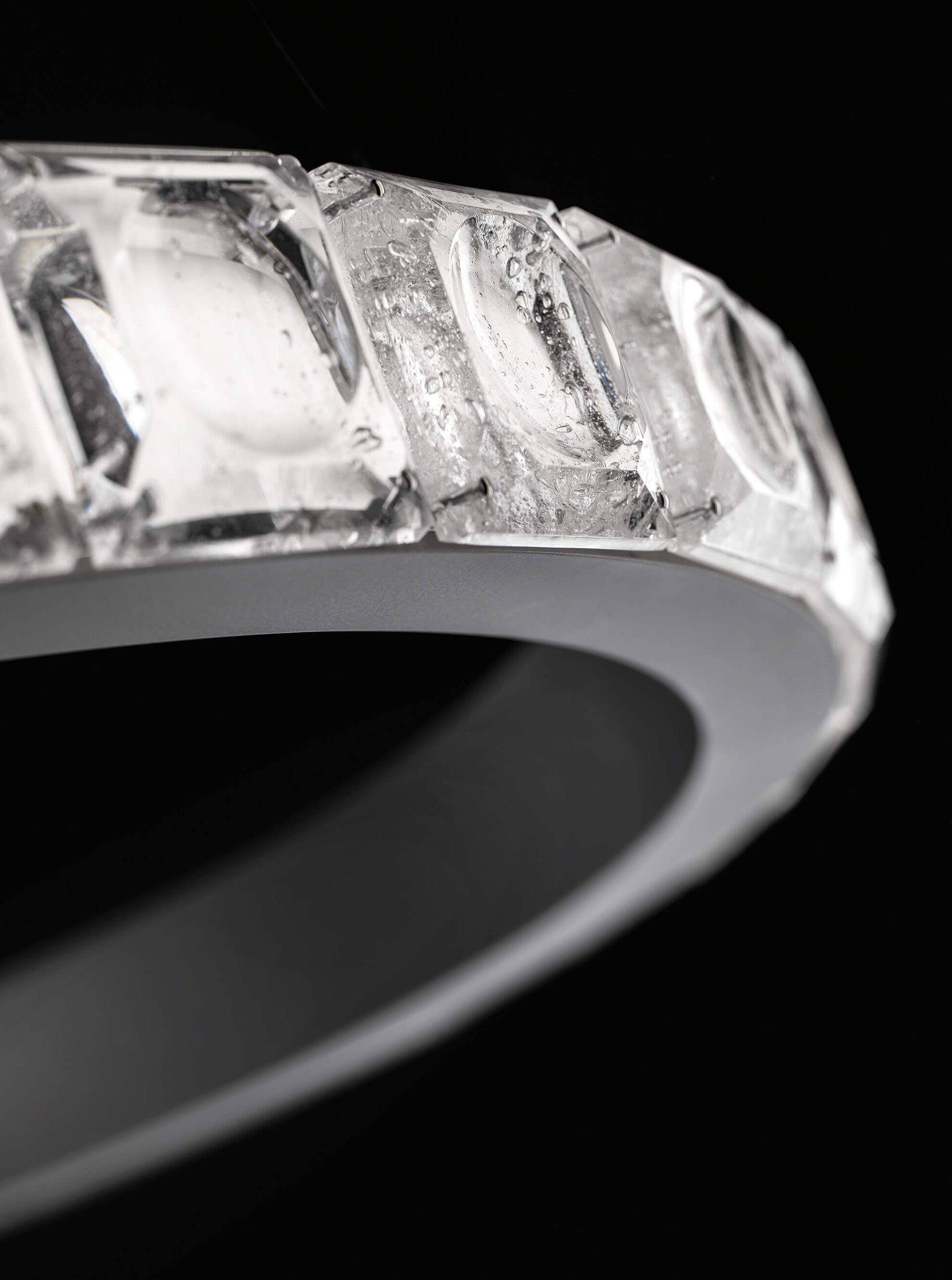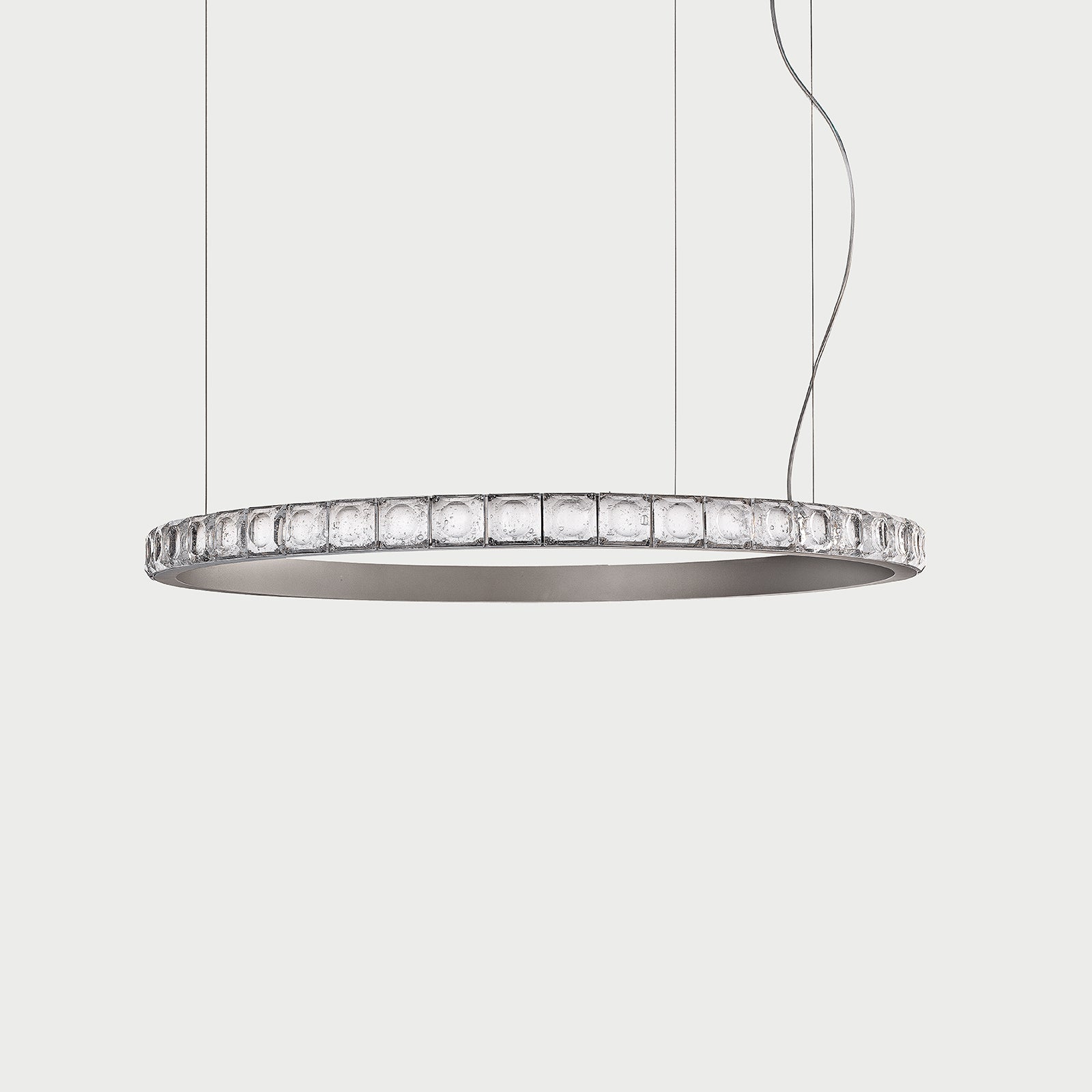 Pendant in metal with satin bronze, satin gold or satin silver finish. Glass diffusers in amber or transparent krek finish.