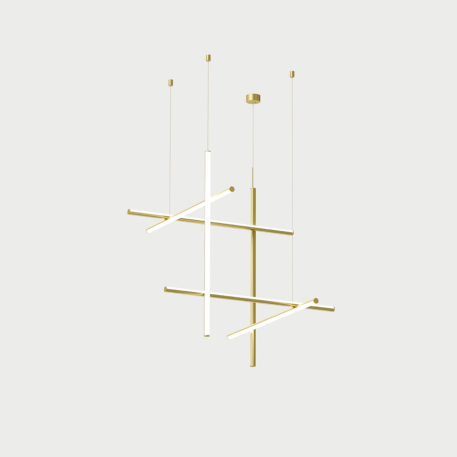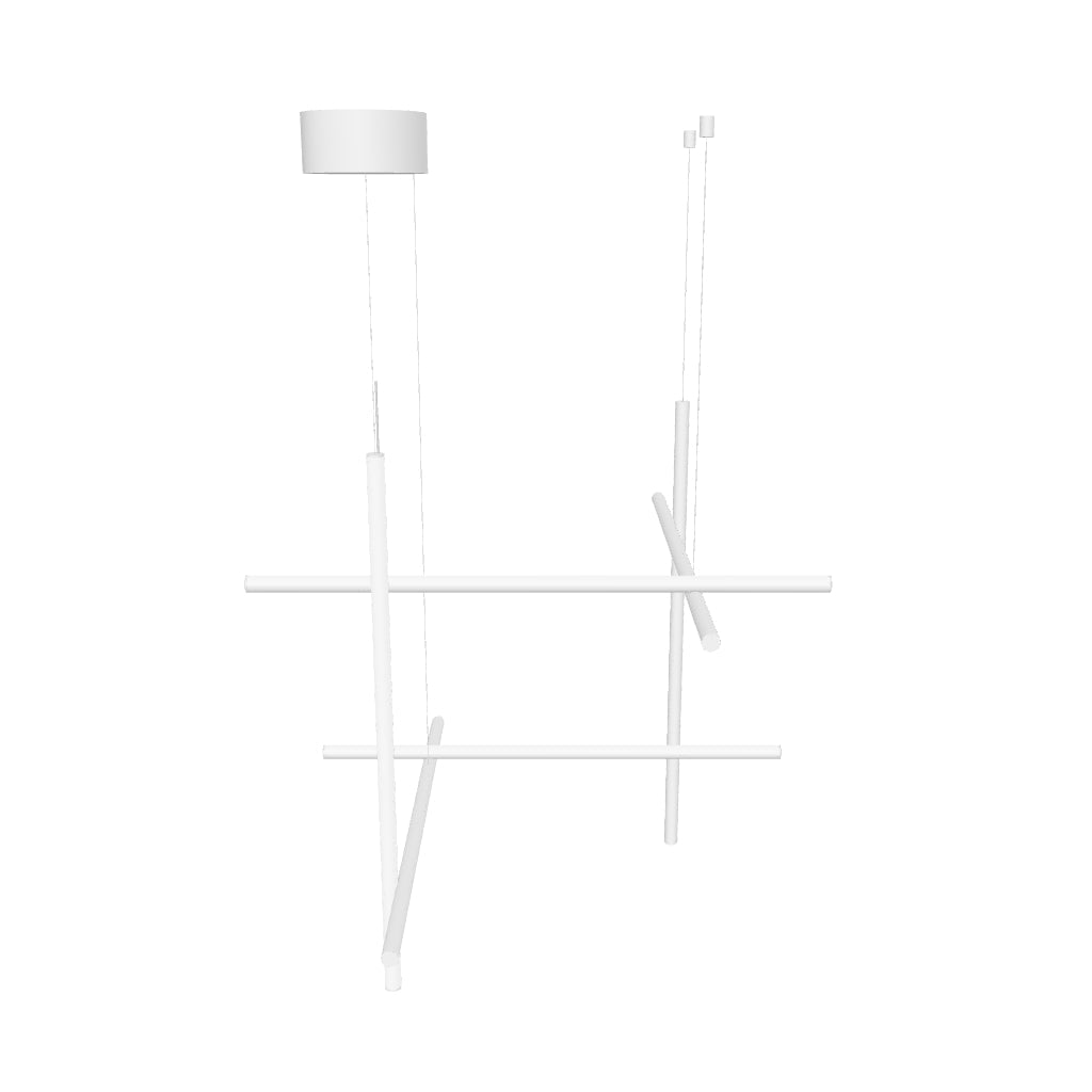 Coordinates is a lighting system with diffuse light composed of horizontal and vertical luminaries arranged in a bright grid of various shapes and complexities. Each element is made of extruded anodized aluminium with a champagne finish and a diffuser in platinum optical silicone with an integrated LED strip (CRI 95). Each element is powered and supported by an invisible electrical and mechanical connection designed specifically to allow for the composition of the 4 hanging models (S1, S3) with 2.4-m cables. The S Module is also available. Its geometry was designed to be repeated to create large grids for custom installations. Each Coordinates configuration includes its own ceiling rose, whose integrated electronics allow for the use of different dimmer systems: push, 1-10, DALI. In the absence of these systems, the amount of light can be set during installation with the push system included in the rose. The related Cl III version is also available for each configuration for installations with a remote power supply.