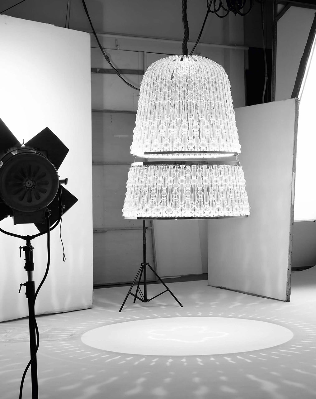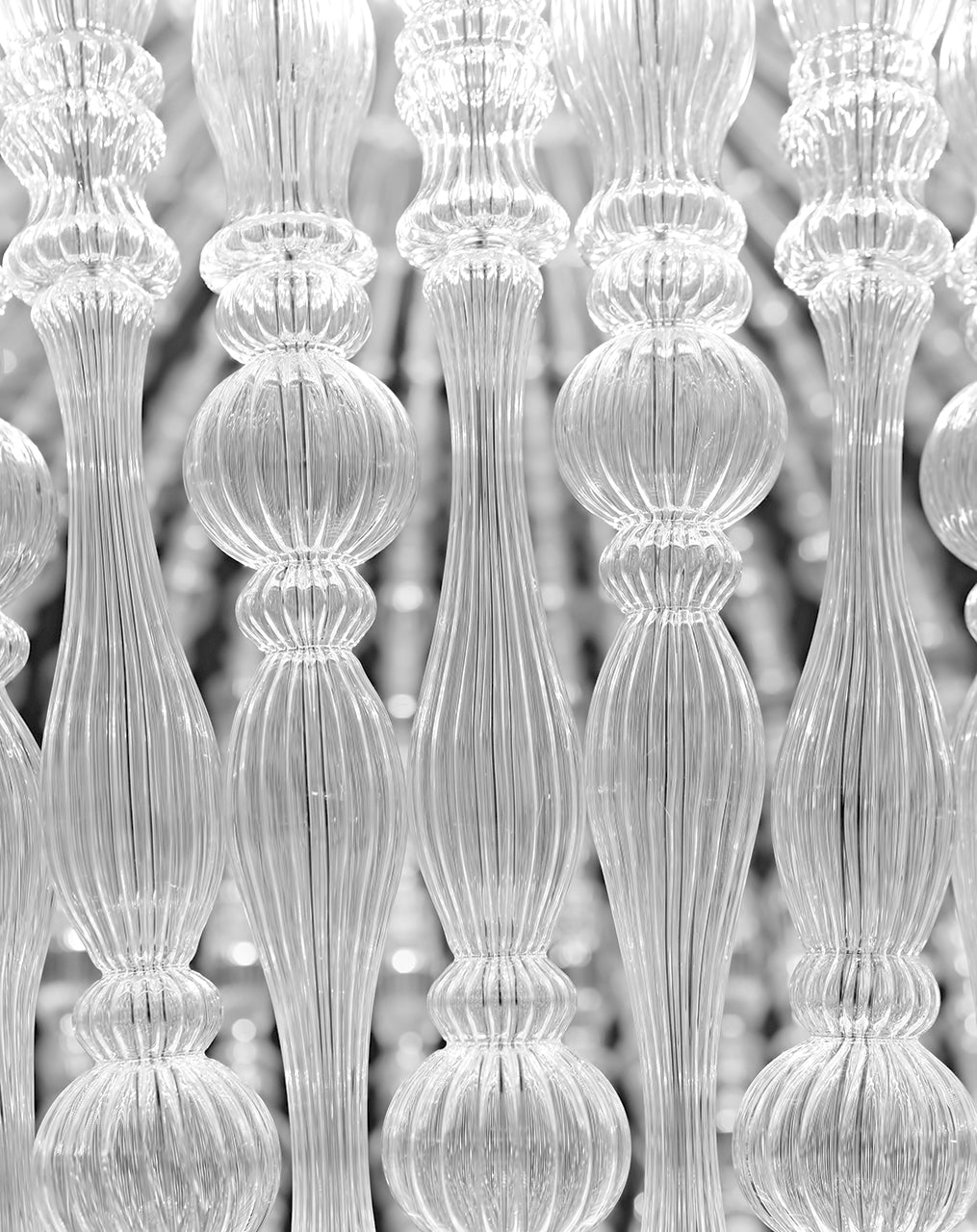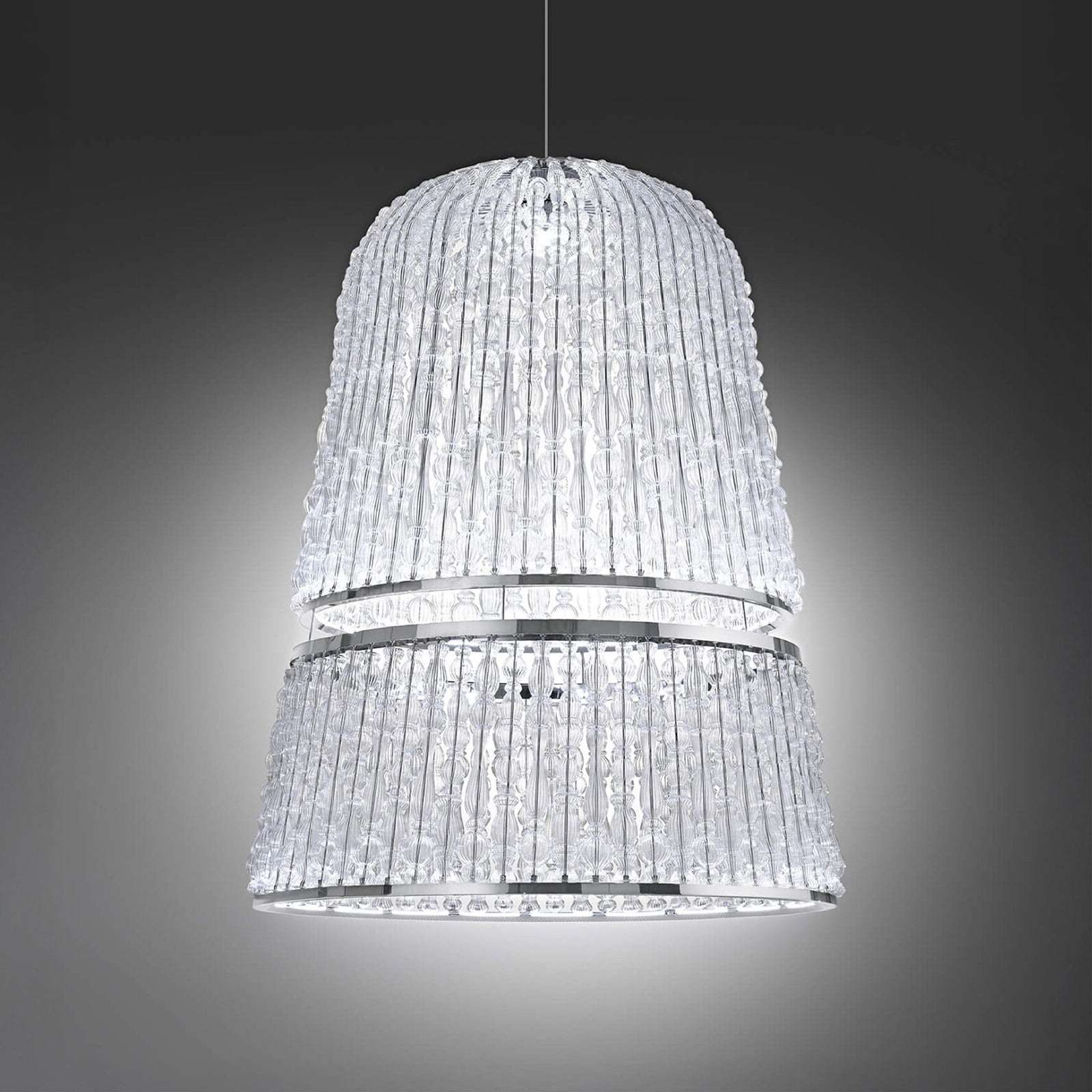 Crowns is a collection of suspension lamps inspired by the beauty of imperial crowns. The LED source illuminates the blown glass elements that recall the shape of a large bell or an architectural dome, creating amazing light effects..