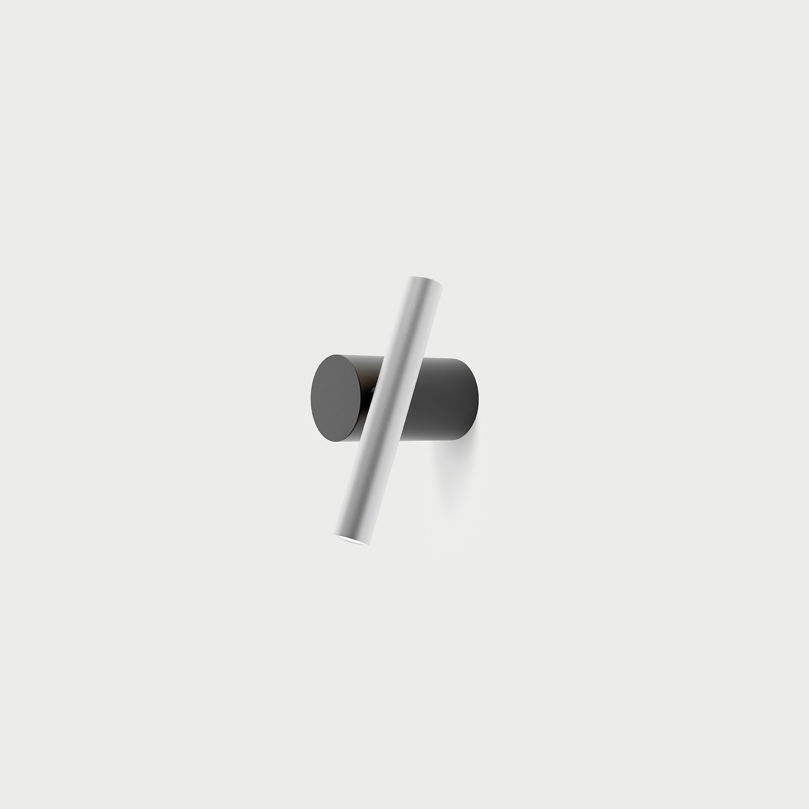The structure consists of two elements: the cylinder anchored to the wall and the spotlight, about 18 cm long, formed by an extruded aluminum and powered by a thin electrical cable. The two parts are connected by a mechanical joint that allows the LED lighting body to move on itself and along the central base, and then to orient the light both upwards and downwards.