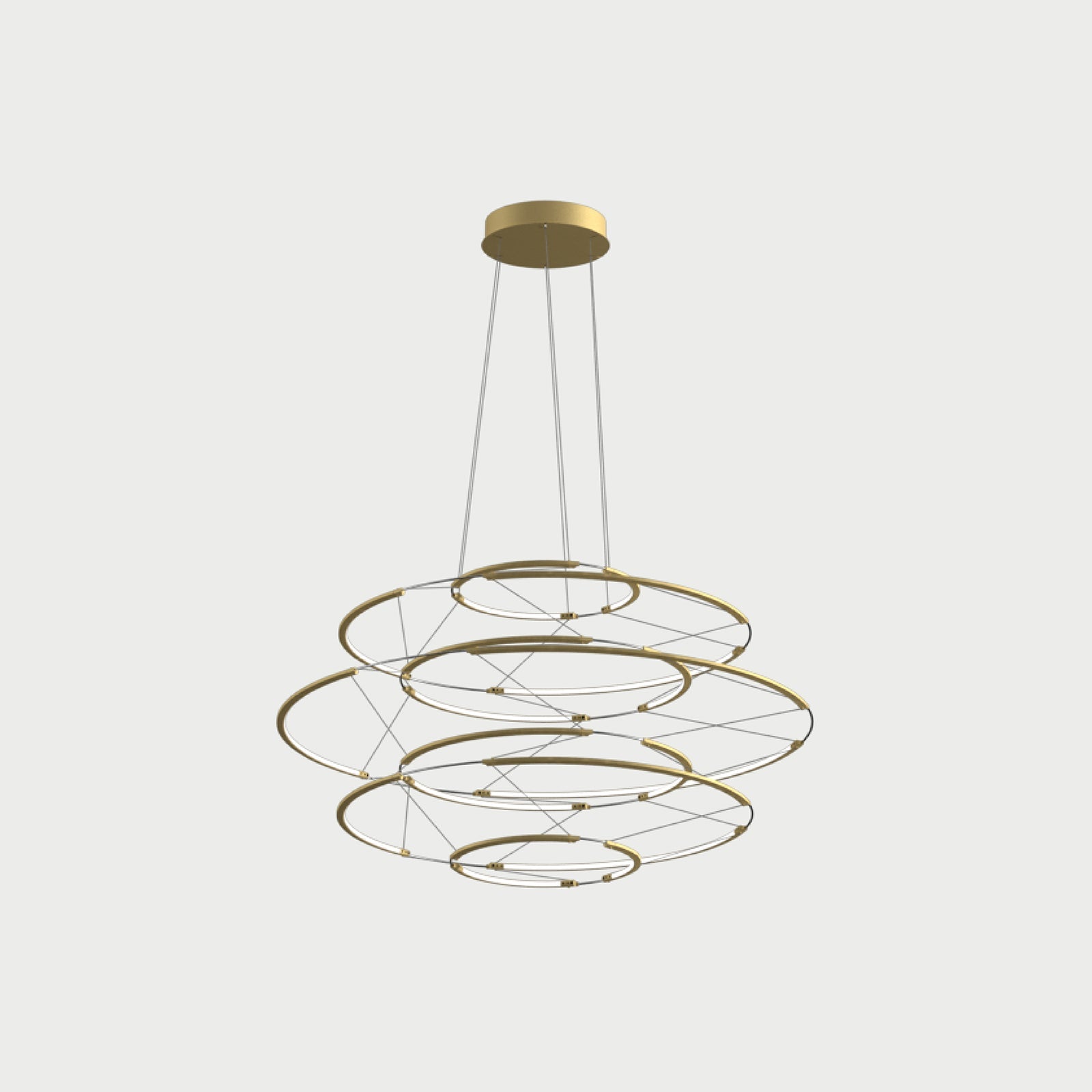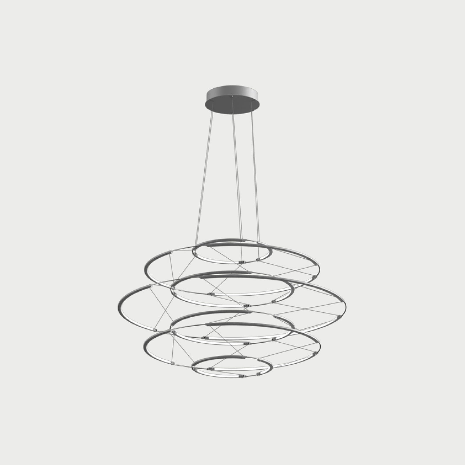 Instinct and constant design diligence in a collection that is the outcome of a sophisticated lighting engineering. A clear lines chandelier combined with an extremely slim aluminium structure for a soft echo of strong and diffused light. Each profile and connector is linked through a miniaturised connection for a unique result of suspended lightness.