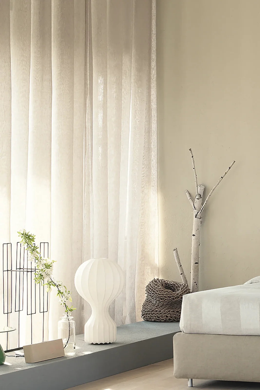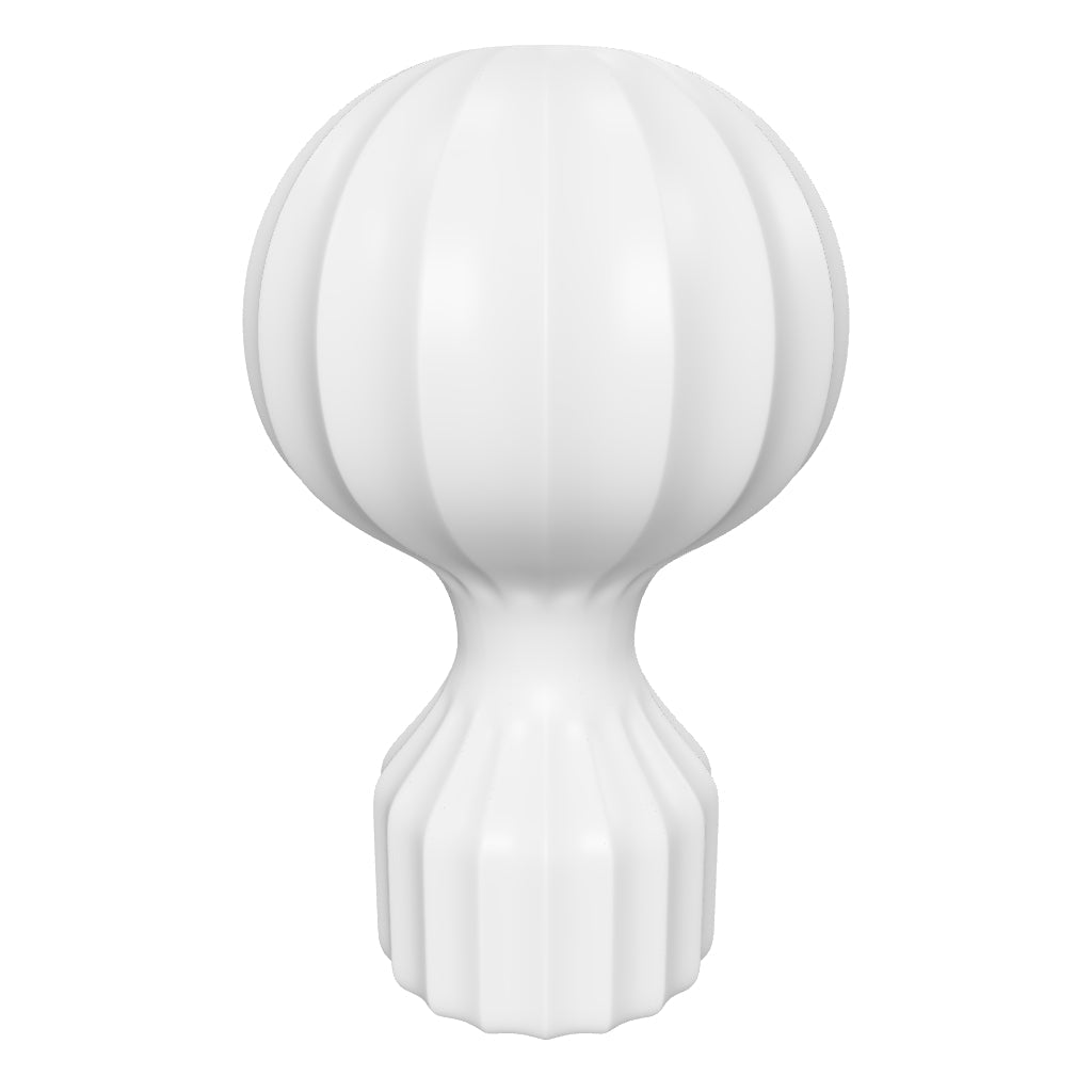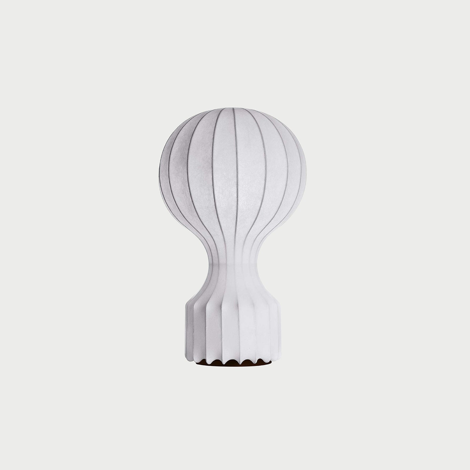 Table lamp providing diffused light. White powder coated internal steel structure sprayed with a unique "cocoon" resin to create the diffuser which is then protected by a transparent sprayed on finish. On the cable there is the electronic dimmer which allows the regulation of light brightness.