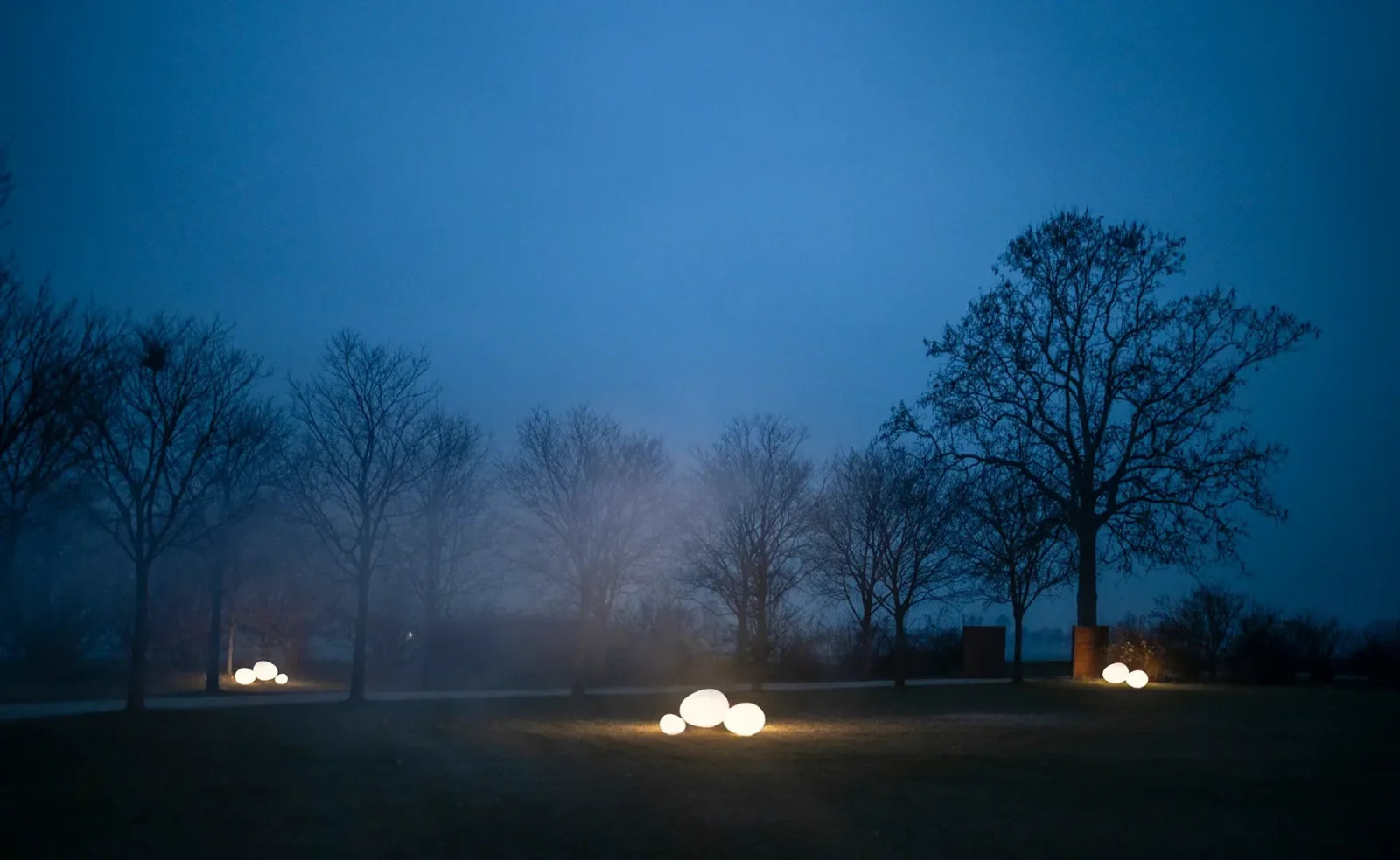 With organic, familiar shapes, the Gregg Outdoor suspension lamps are designed to create luminous presences and compositions out in the open air, thanks also to the various sizes available.