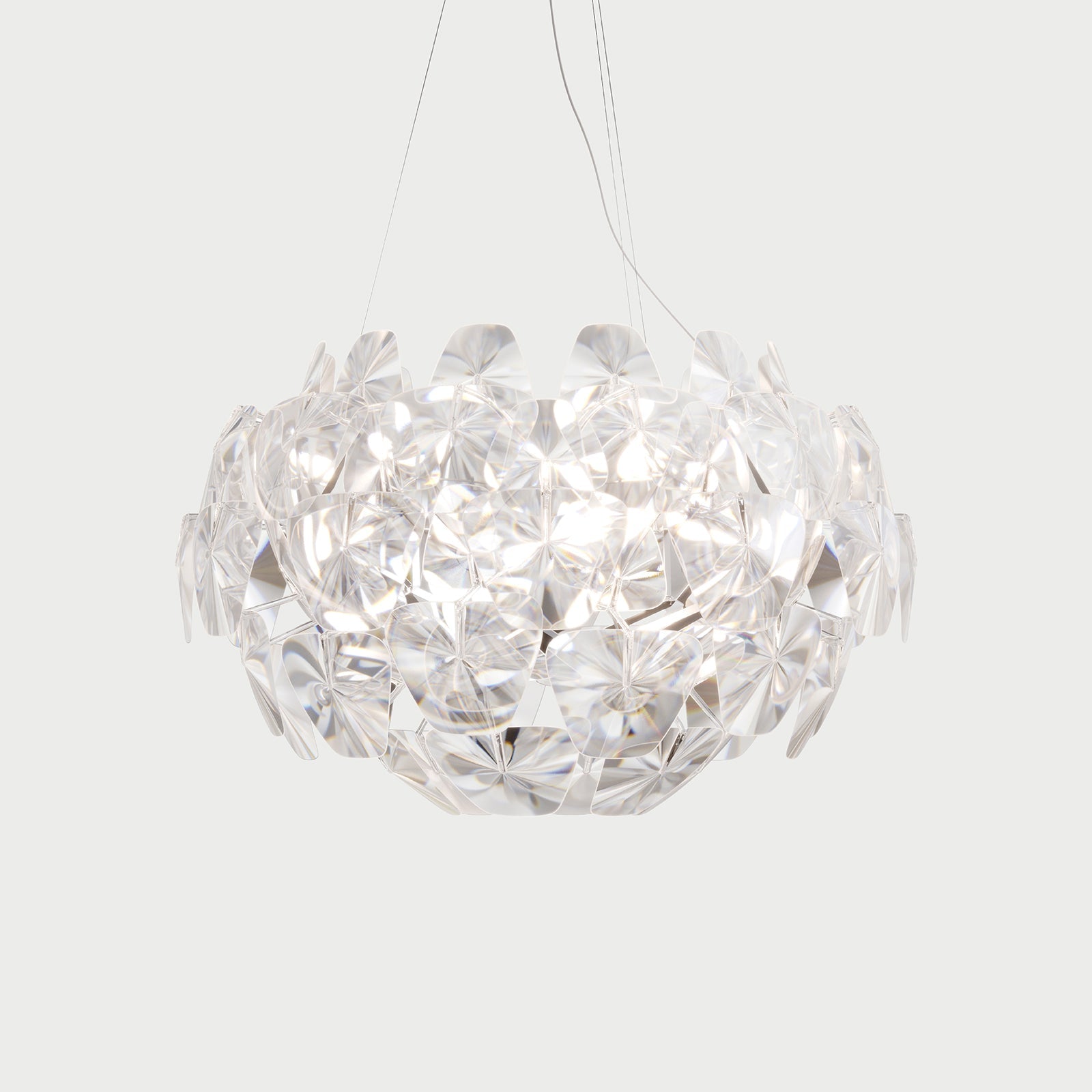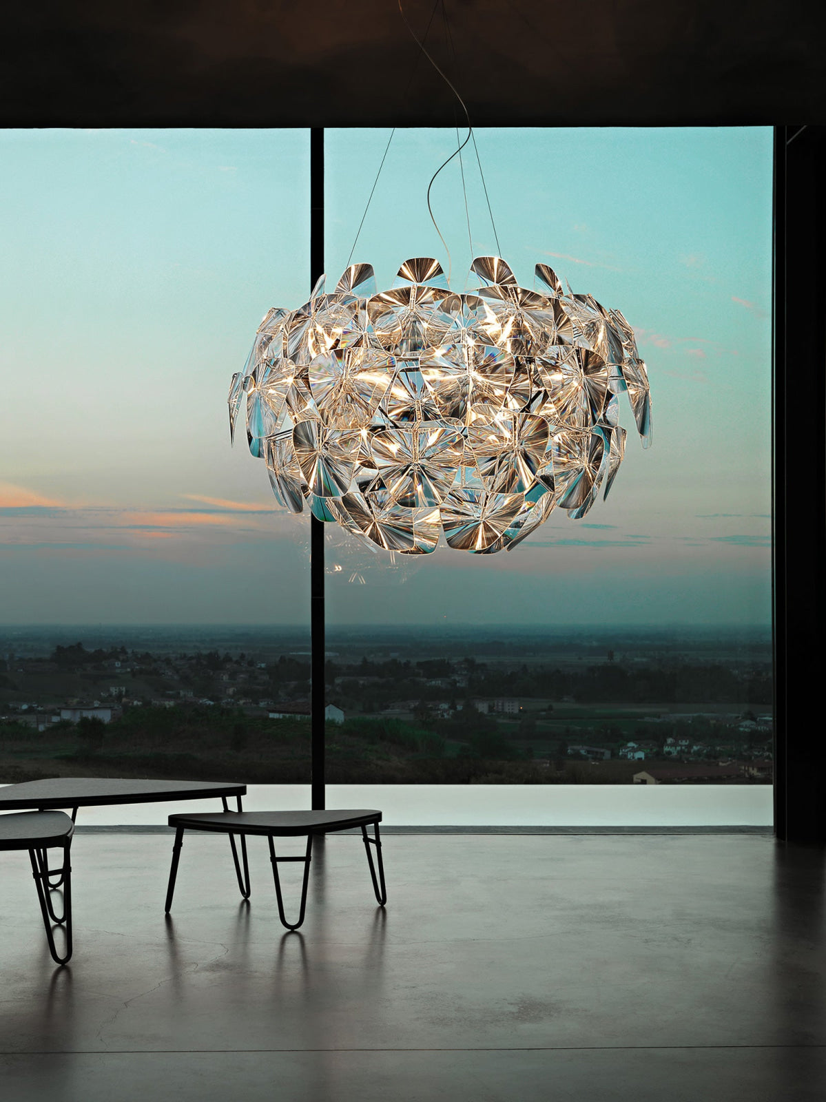 Incredibly light and easy to dismantle, Hope revives the magic of traditional chandeliers, reinterpreted with sophisticated modern technologies and contemporary materials. The thin methacrylate Fresnel lenses multiply the light, creating a pleasant, sparkling and festive atmosphere.