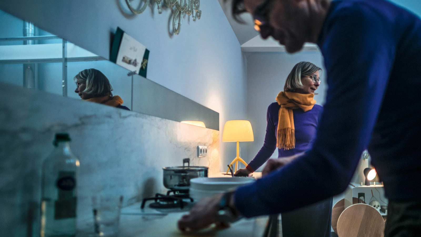 Lumiere has never stopped evolving: the new Lumiere Nuances collection offers three new colours in which the metal parts are coordinated with the colour of the glass when the light is off, which is then illuminated with light and warmth when it is switched on.