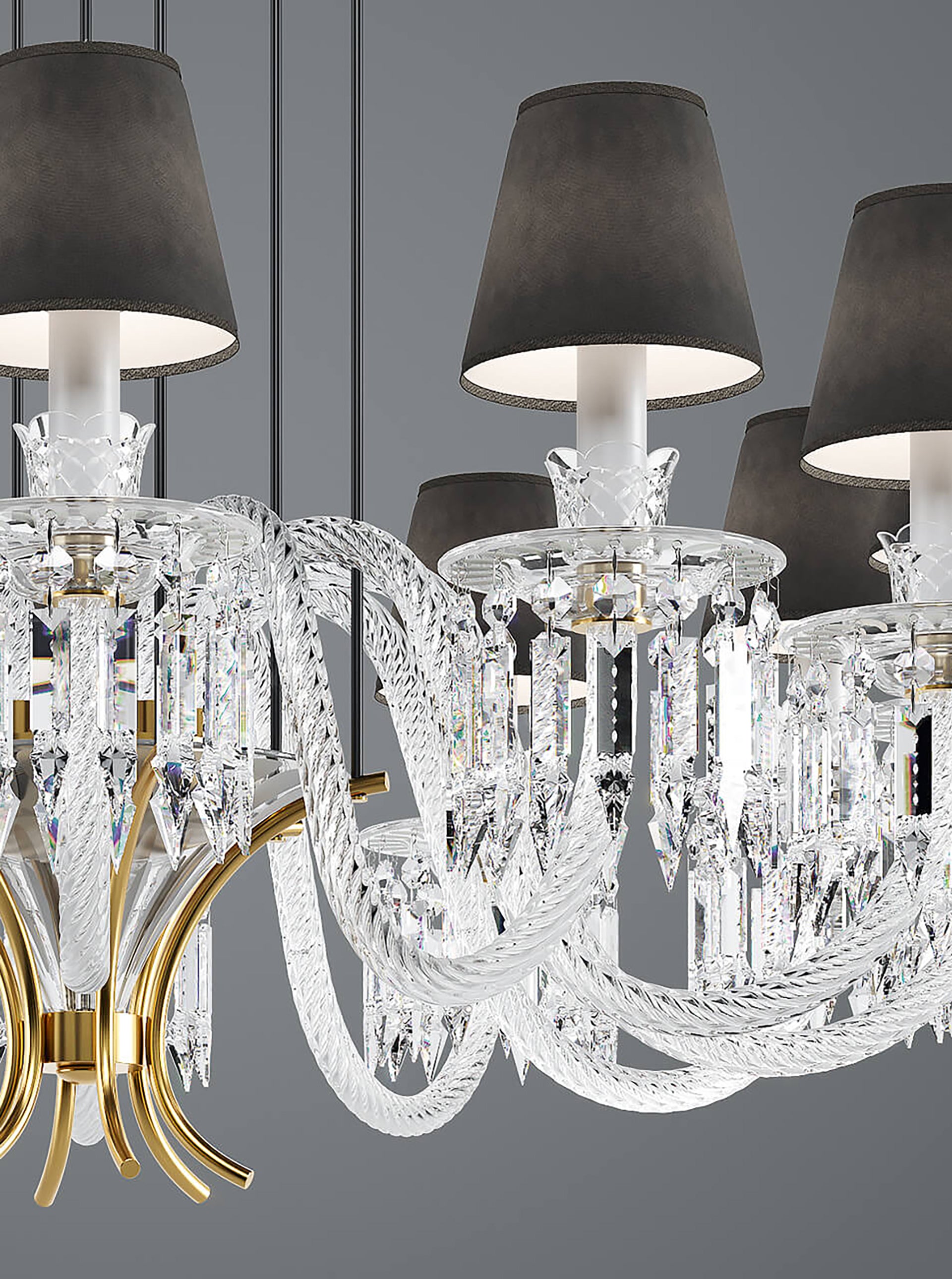 Margot is a complete and perfect micro-architecture and takes inspiration from timeless classic design to interpret the most elegant contemporary trends. Rare as a pearl this chandelier is made of hand-carved crystal and glass.