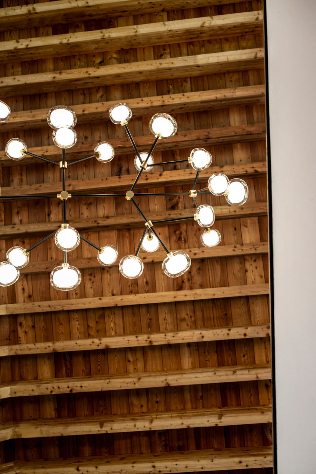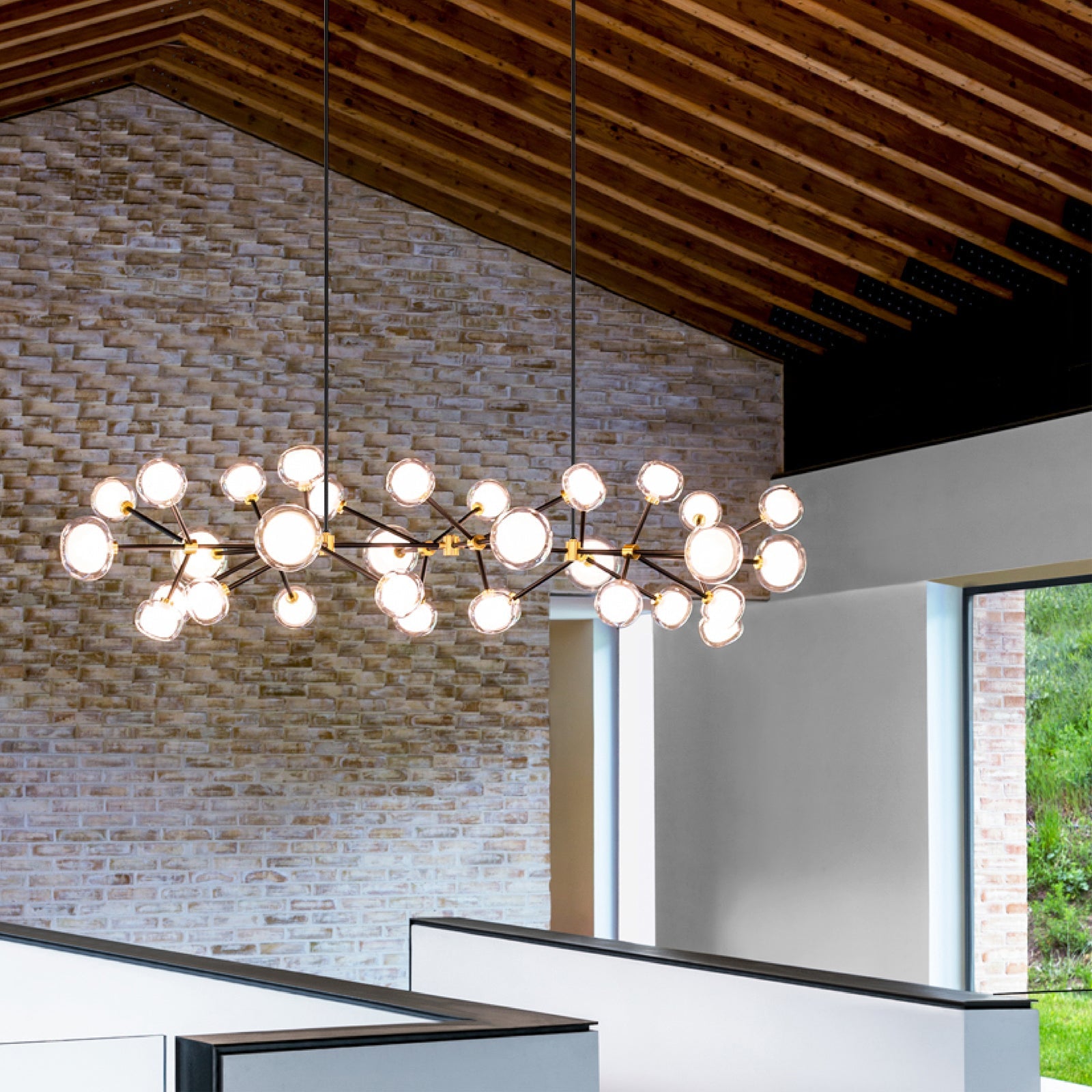50s inspired collection of elegant and sophisticated lamps representing the detail to enrich any location. A double-sided spherical bright object in borosilicate glass makes these lamps available in different compositions and a structure made by metal coated with epoxy powder enriched with brushed brass or black chrome details. Different varieties are available for any situation: chandeliers (in five different models) or table lamp, bedside (smaller), floor or wall (available in three different models for single or composite personalized installation). Richness and sobriety all in one single element.