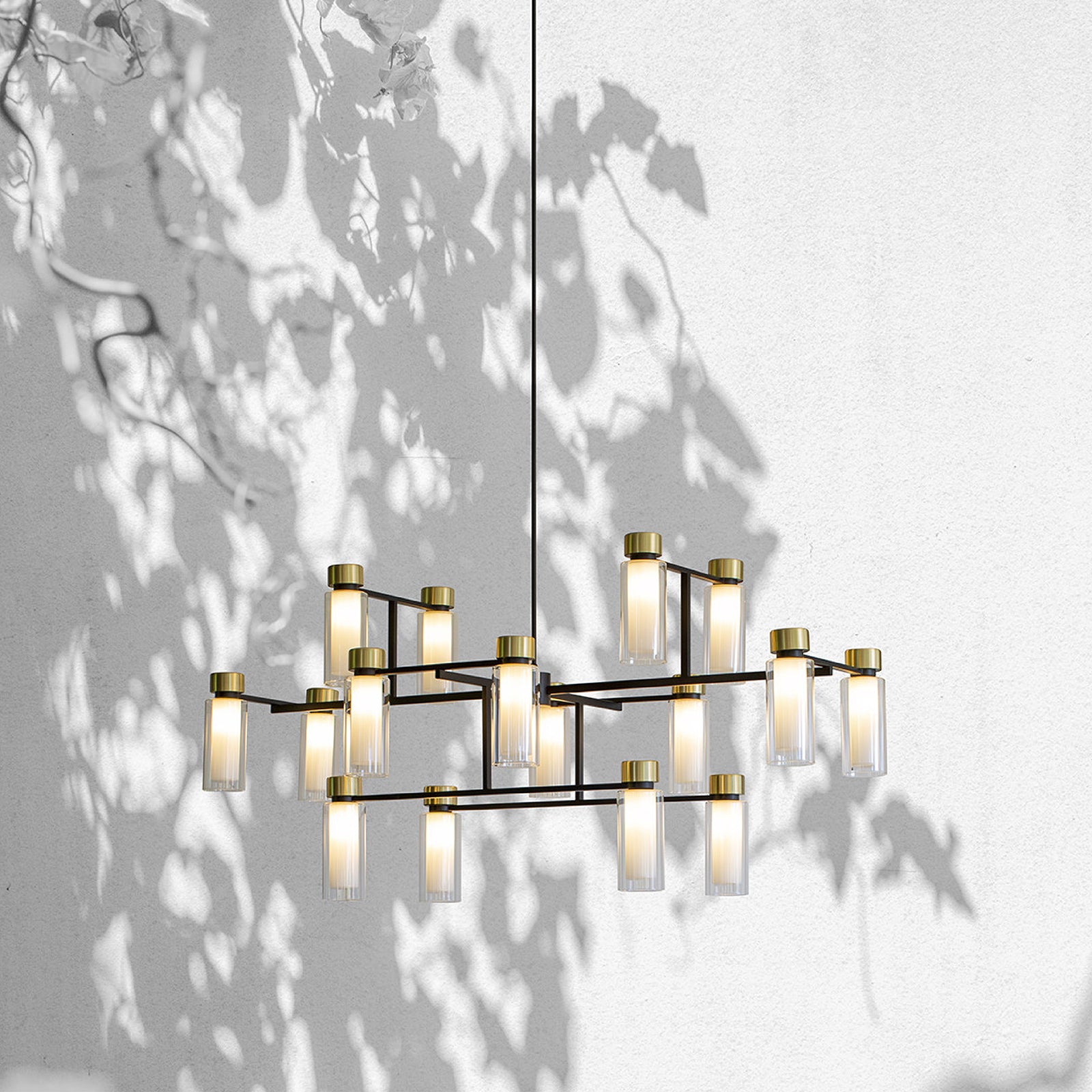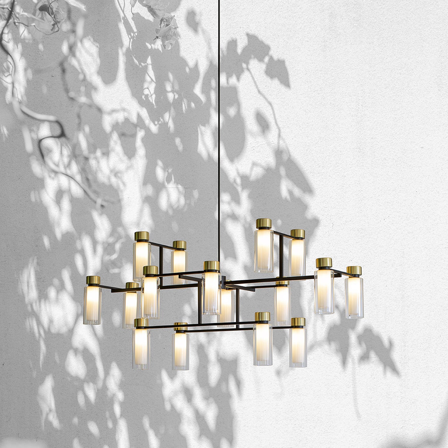 Family of lamps with a rational design enriched by precious metallic details and double-wall cylindrical diffusers that give a fascinating and harmonious light diffusion. The particular orthogonal structure and the well-balanced proportions give these lamps a strong avantgarde sign while maintaining a formal, familiar and refined appearance.