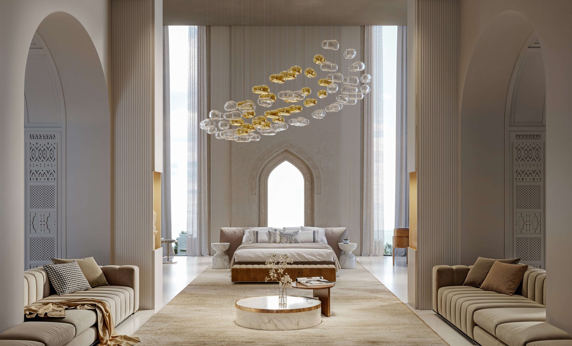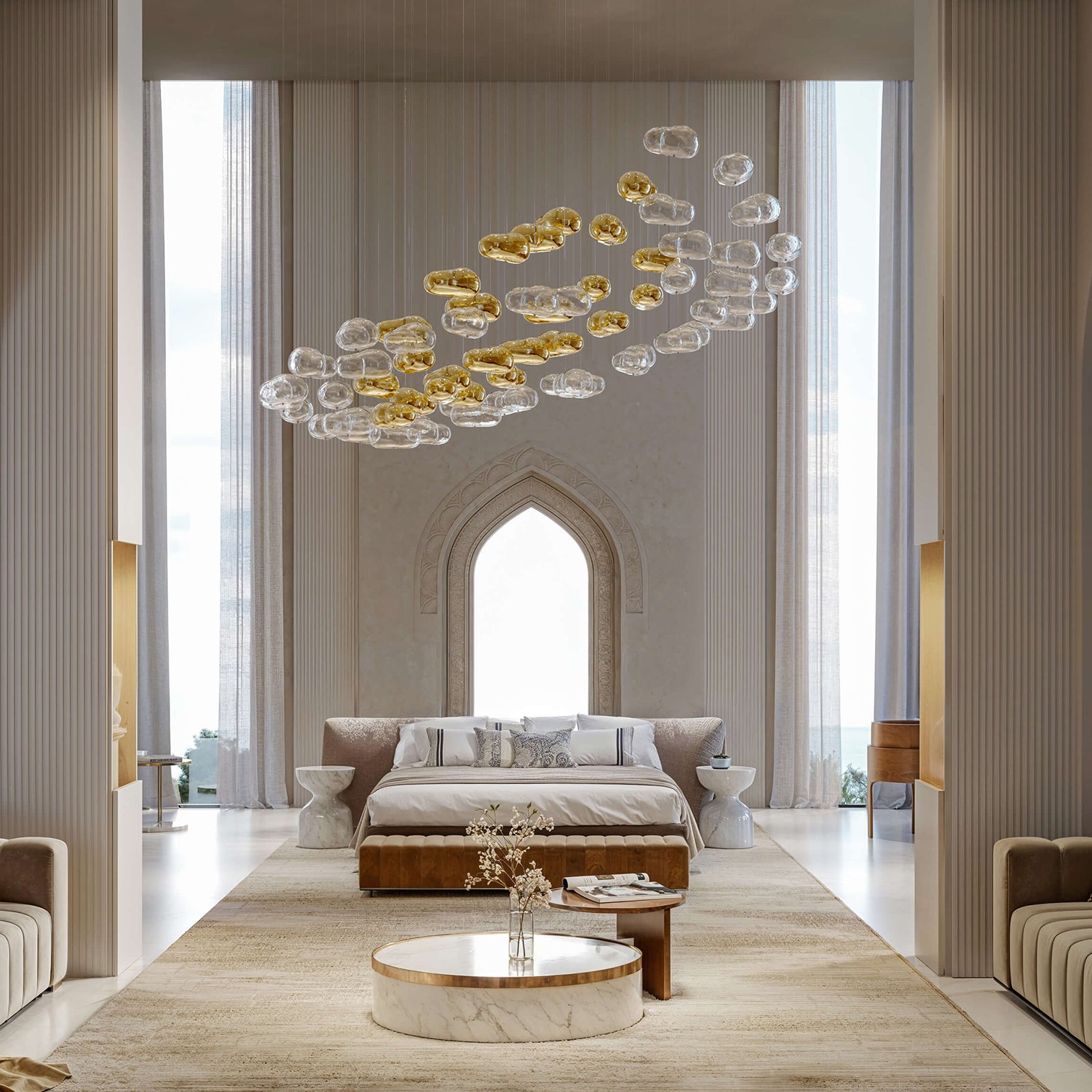 Reva brings the magic and beauty of the ocean. When installed together they create a cascade of light that evoques ocean drops suspended in the air, reflecting uniquely.