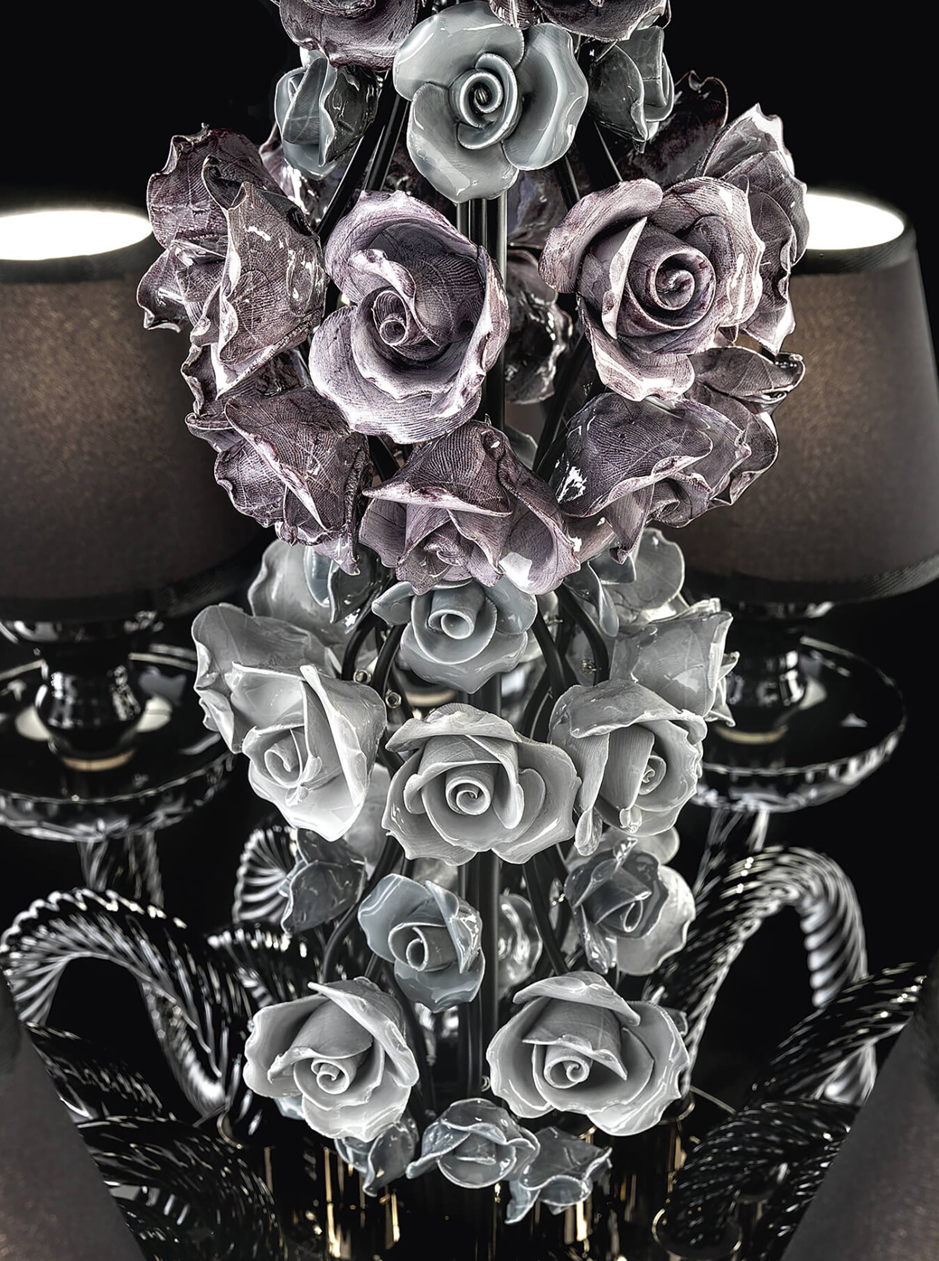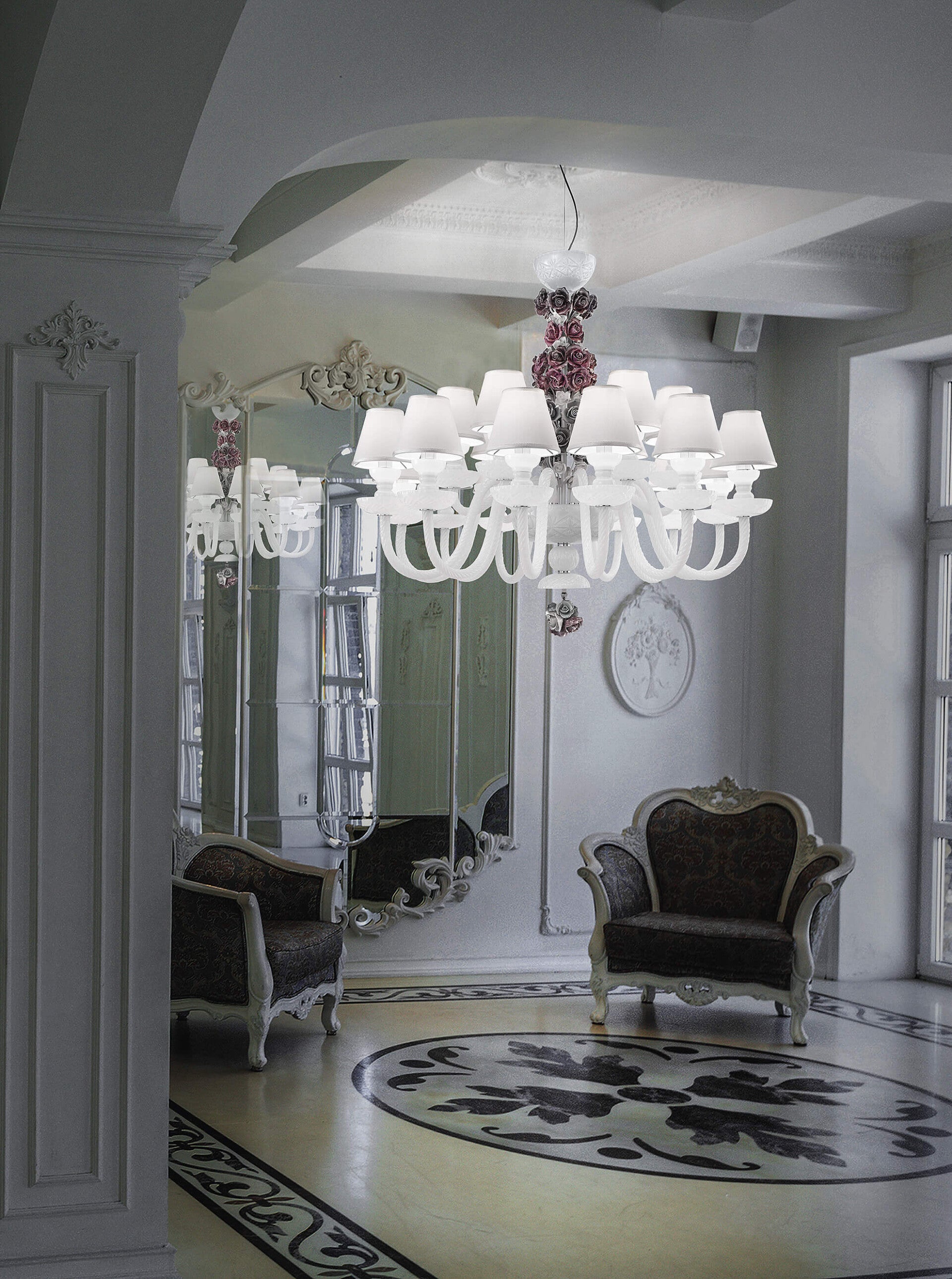 Rosemarie chandelier is inspired by the nature of flower petals, interpreted in porcelain with different colors that create a delicate harmony.