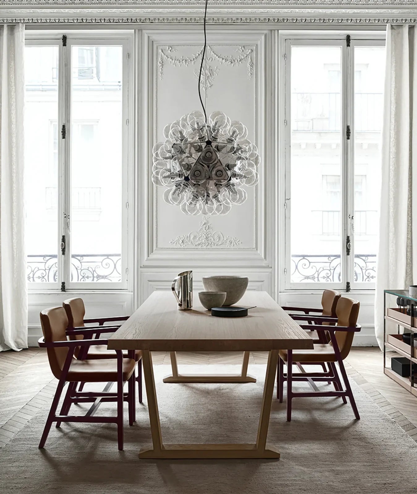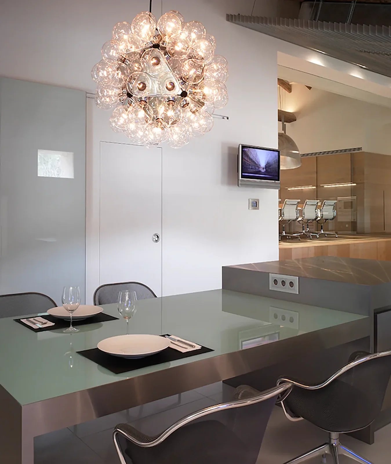 Inspiration behind the design: An update on the famous 1960s creation by the Castiglioni brothers, Achille Castiglioni designed this piece for “community areas, lobbies and rooms that need a lot of light for special occasions,” without sacrificing style and beauty.