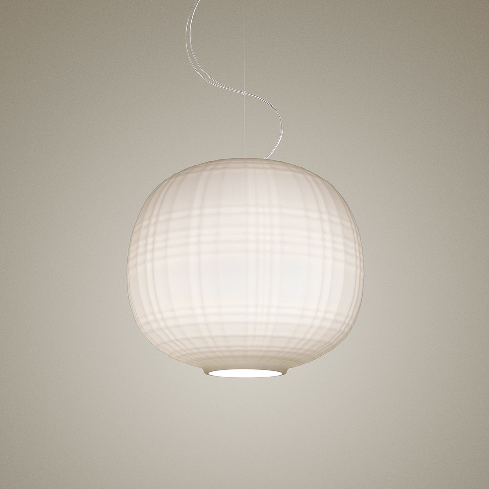 Blown glass packed with character, obtained thanks to a special hand-blowing technique that recreates the effect of the famous Scottish fabric. The Tartan suspension lamp is distinguished by lines and folds across its surface, generating an original graphic game of lights and shadows.