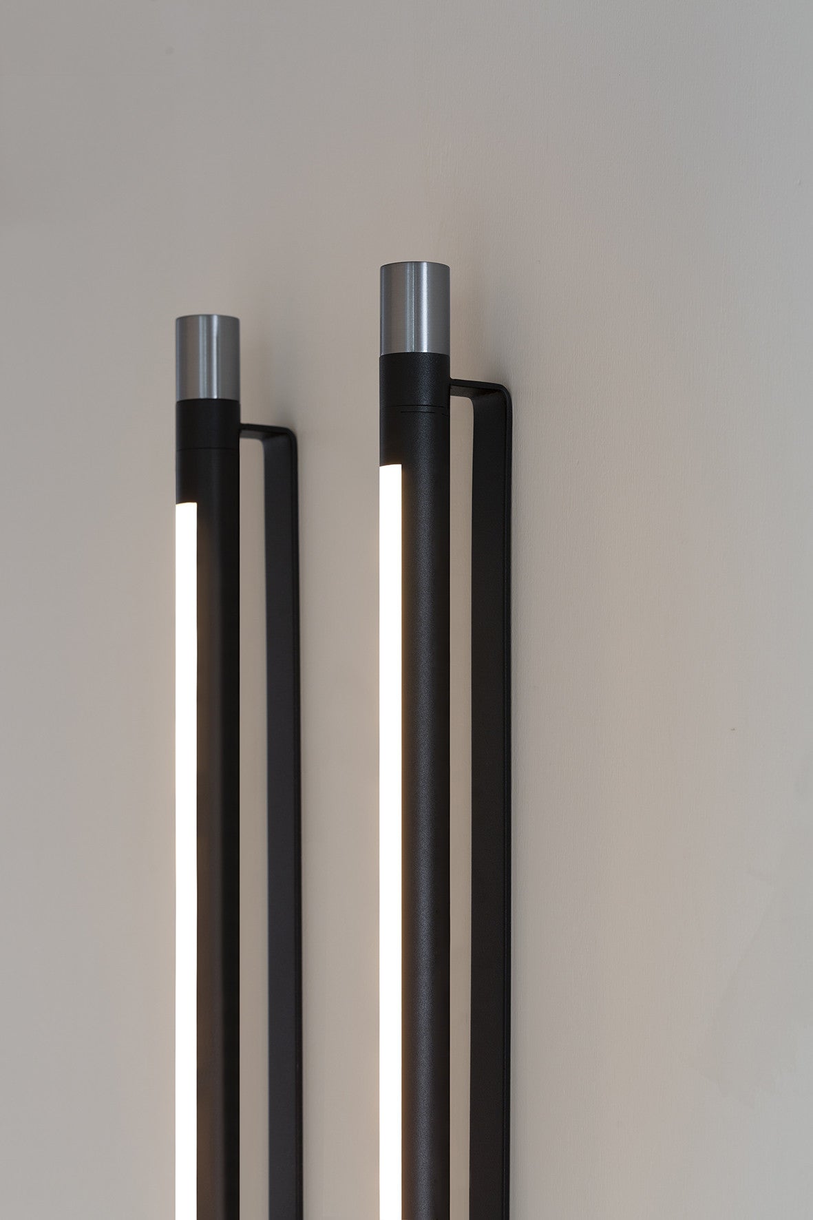 Designed by Federica Biasi, the Thula appliques and suspension lamps are based on a simple and architectural central element with an illuminating function to which an organic component in wood or quilted leather is added in a skillful game of addition and subtraction. Consists of a linear dimmable LED; in the simple wall version it can be oriented, thus giving direct or indirect light.