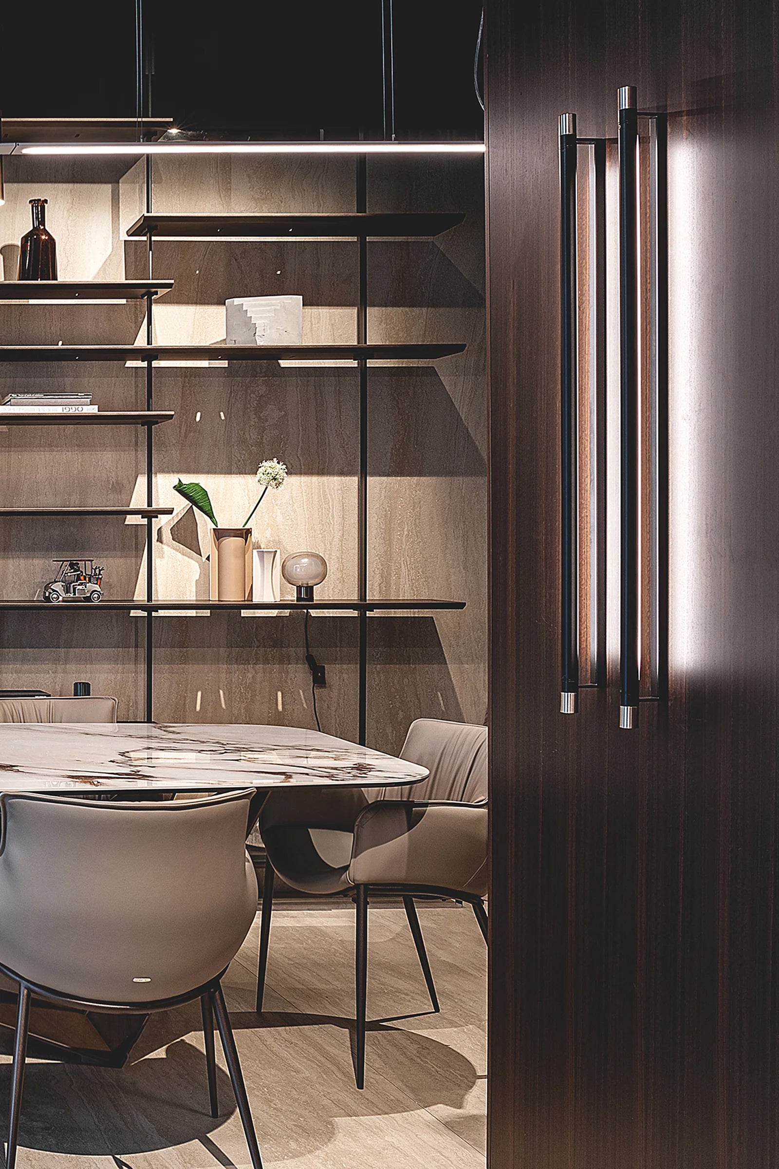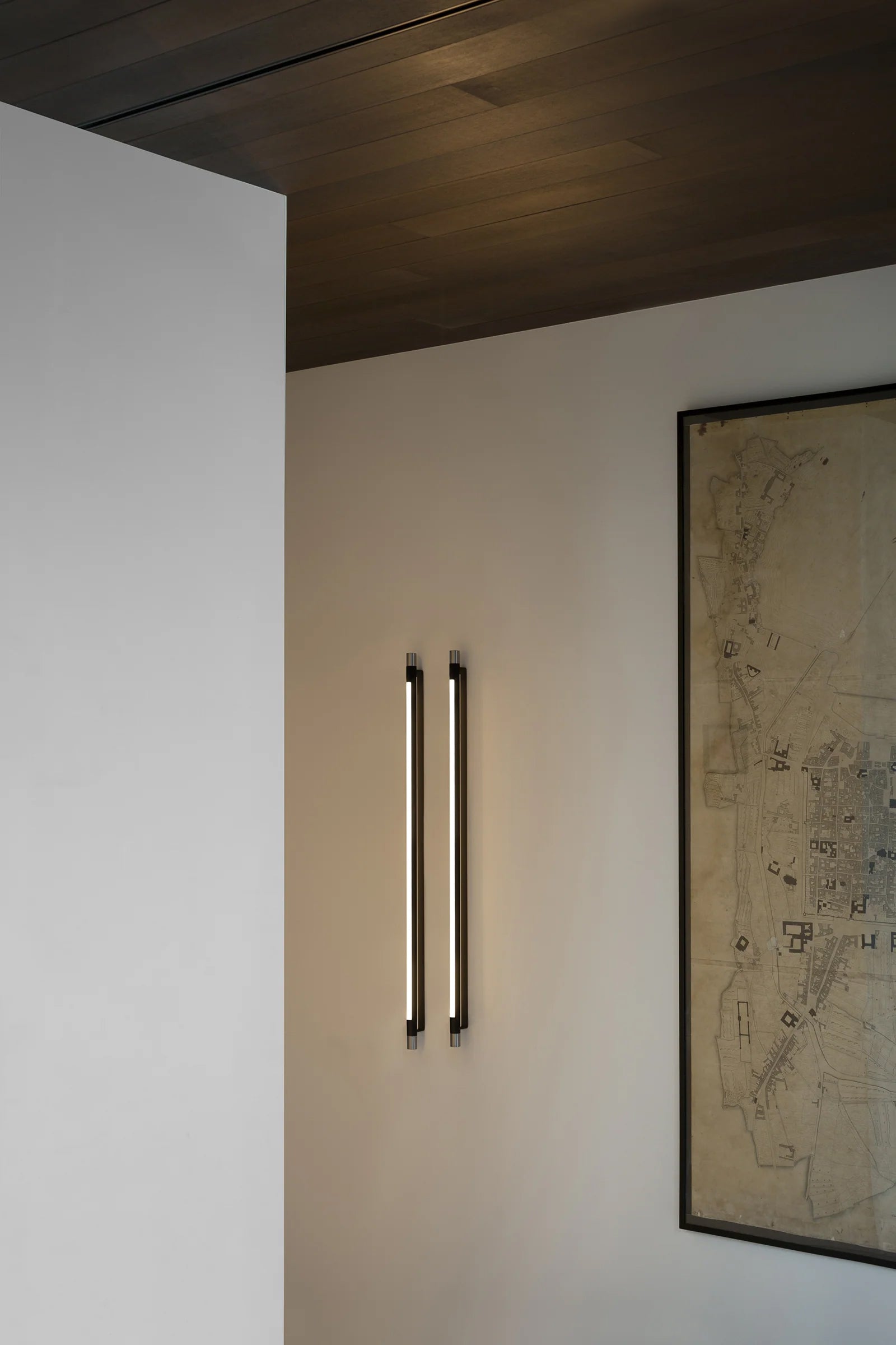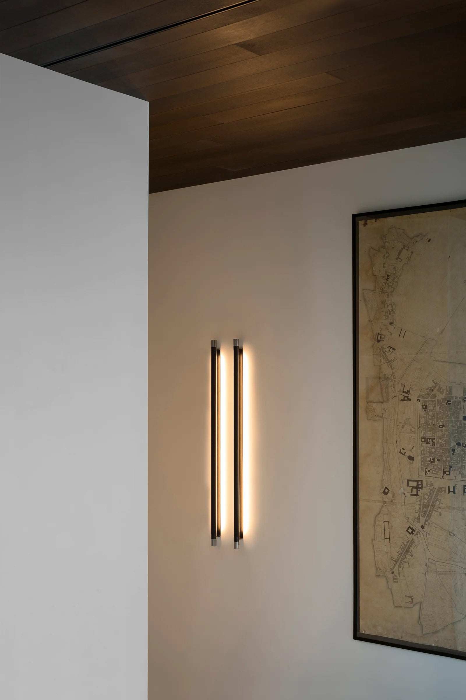 Designed by Federica Biasi, the Thula appliques and suspension lamps are based on a simple and architectural central element with an illuminating function to which an organic component in wood or quilted leather is added in a skillful game of addition and subtraction. Consists of a linear dimmable LED; in the simple wall version it can be oriented, thus giving direct or indirect light.