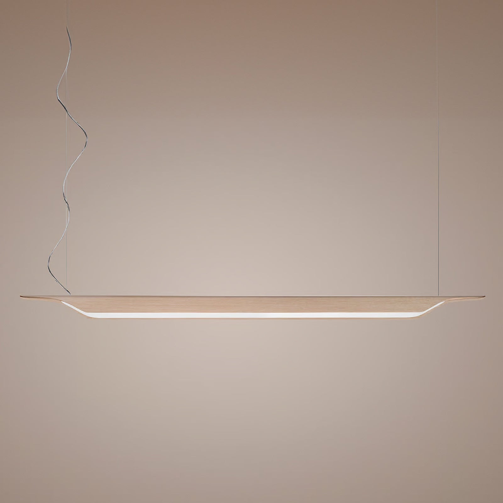 An unprecedented wooden suspension lamp, mid-way between Nordic culture and Mediterranean creativity, Troag is a light and linear sign in space.