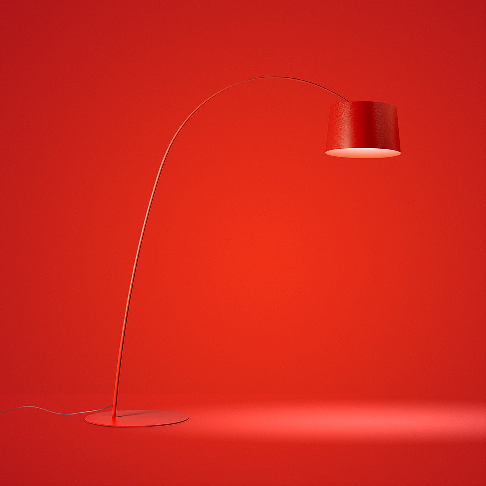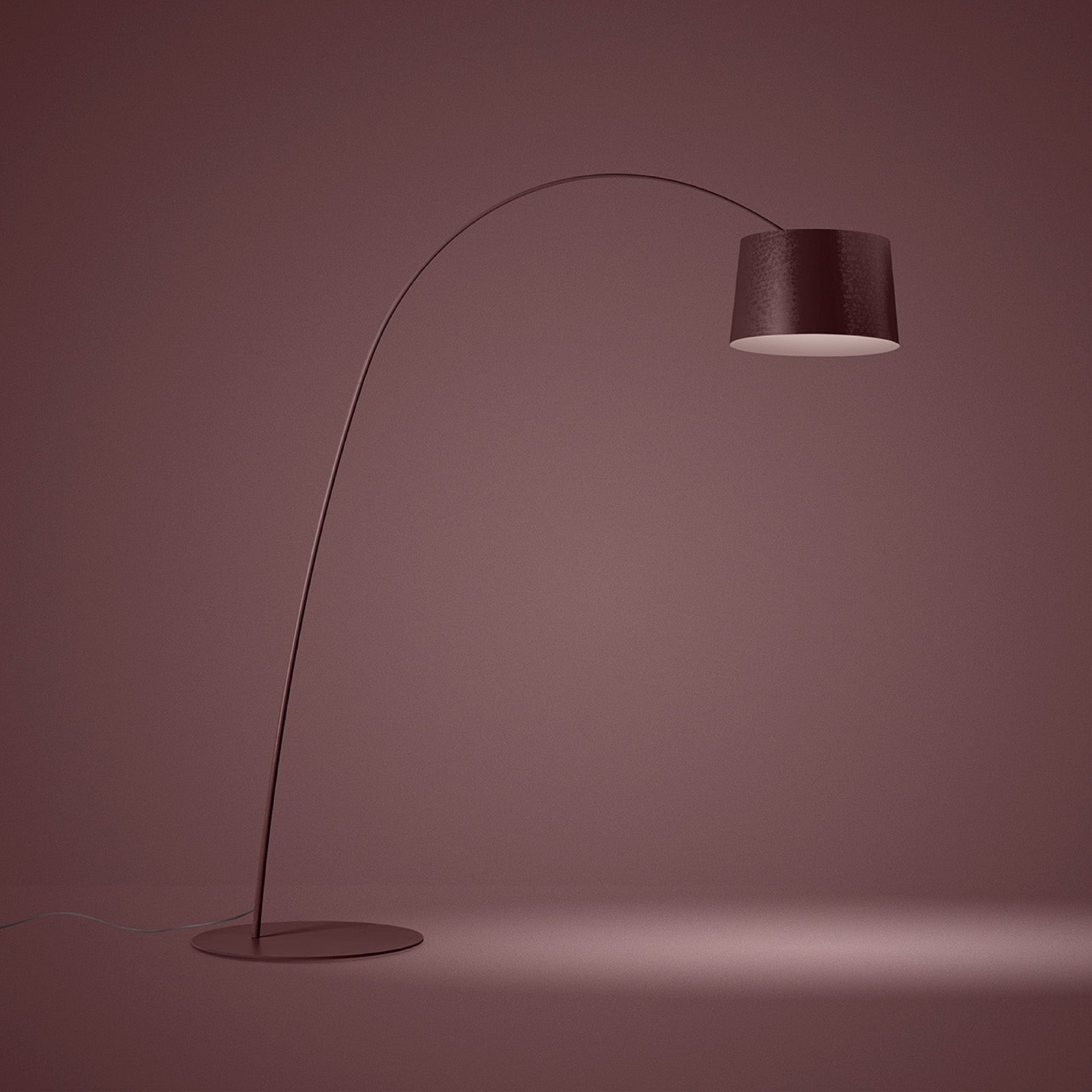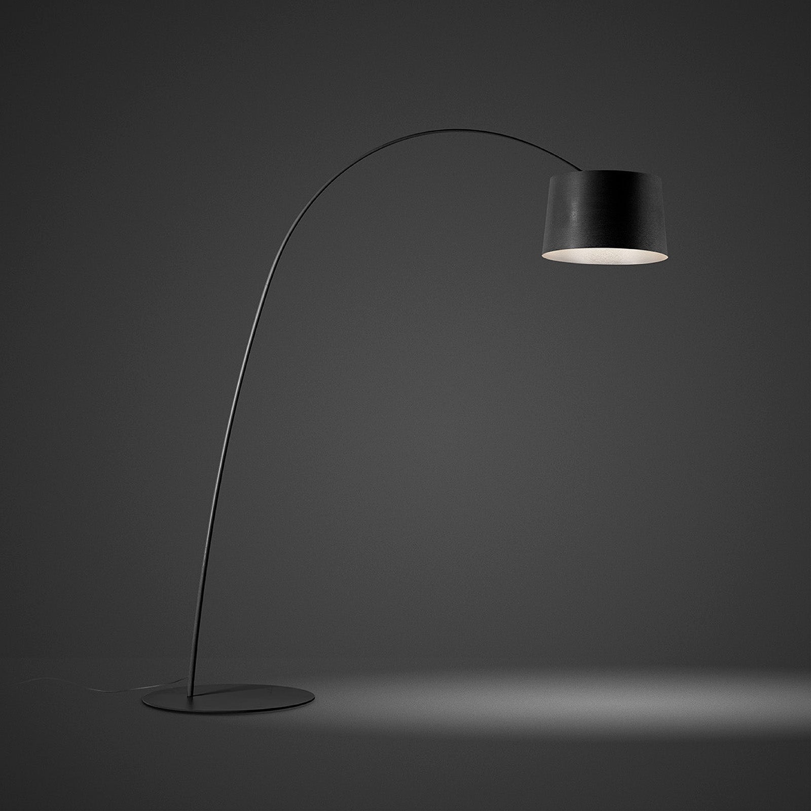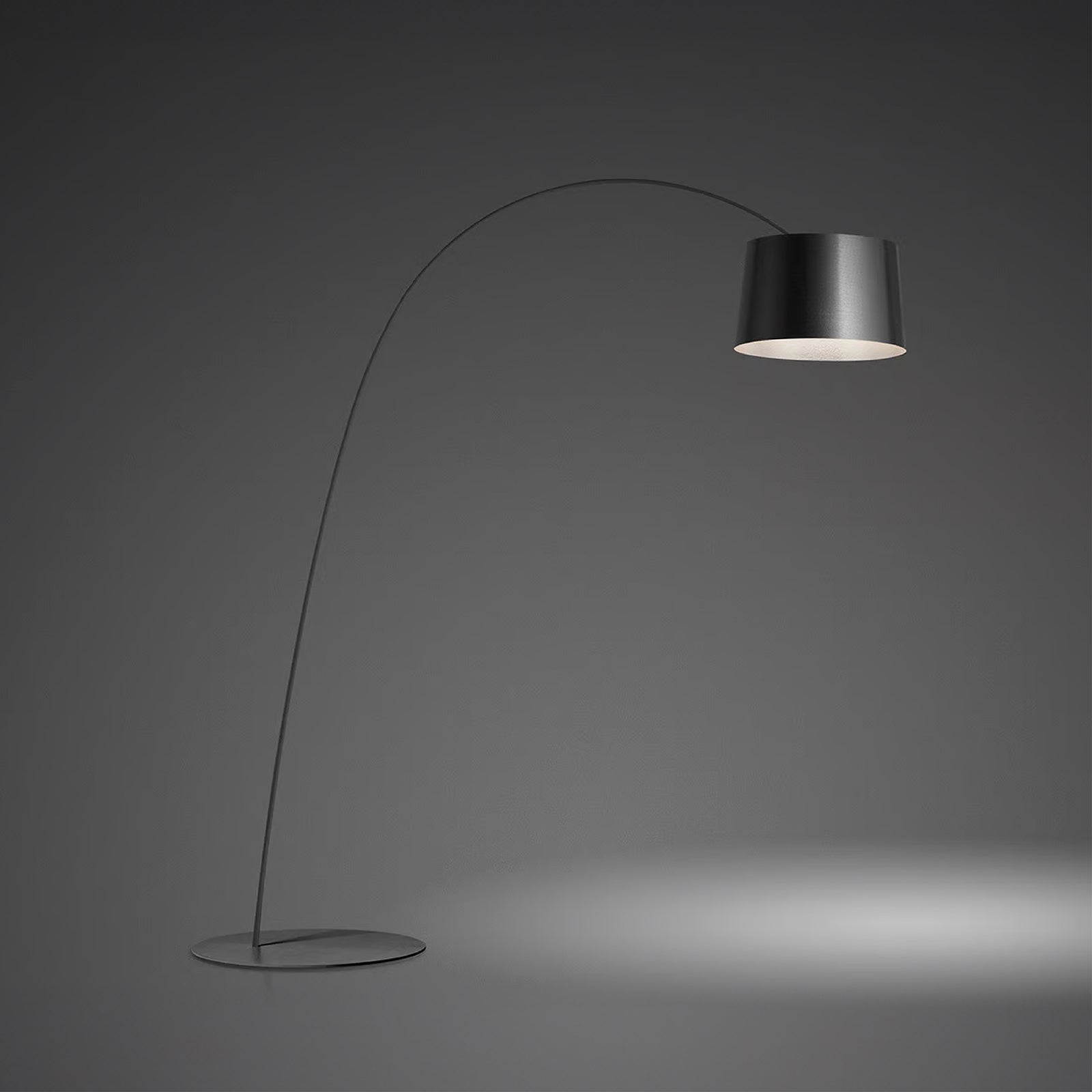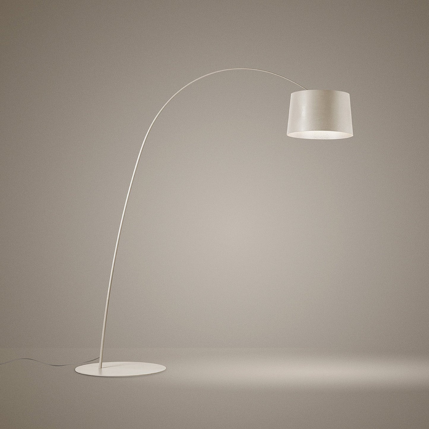 A fine arched line, a flexible sign which by magic suspends a large diffuser in mid-air: this is Twiggy, a floor lamp that meets multiple setting and lighting requirements.