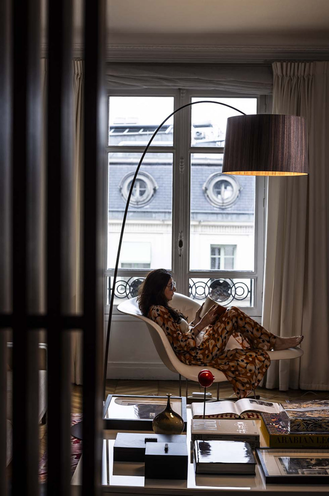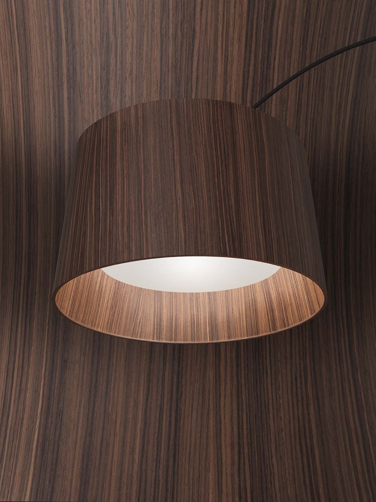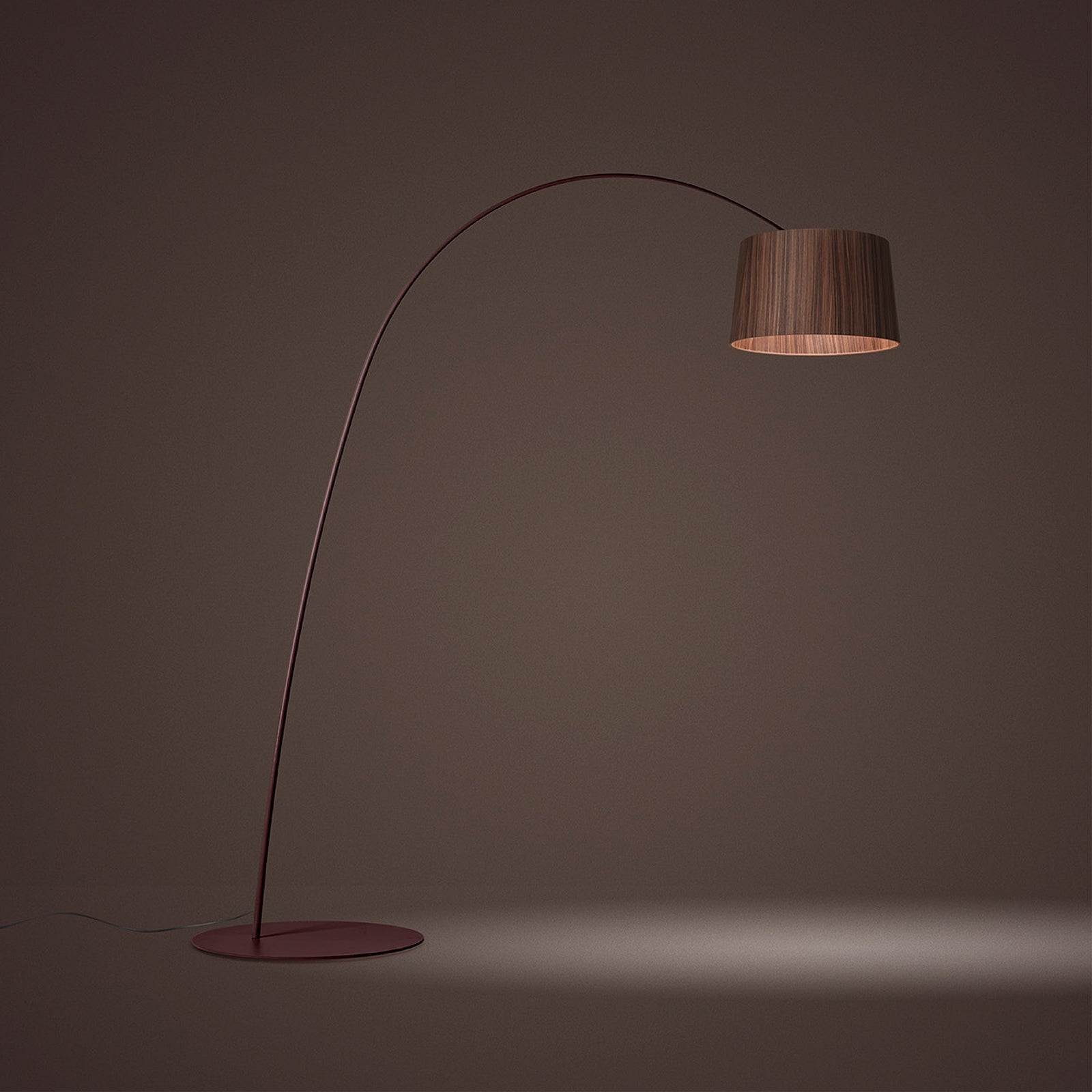 A fine arched line, a flexible sign which by magic suspends a large diffuser in mid-air: this is Twiggy, a floor lamp that meets multiple setting and lighting requirements.
