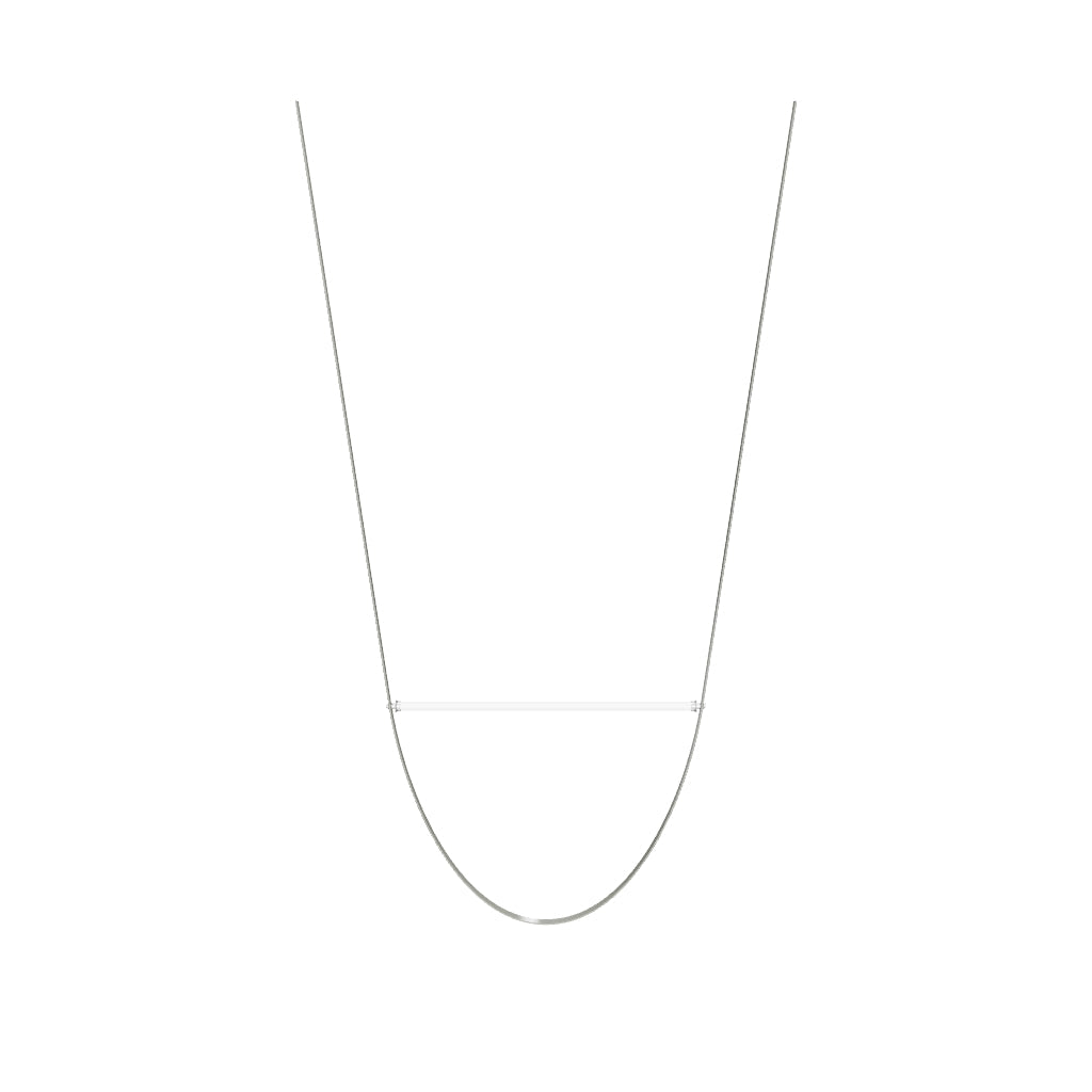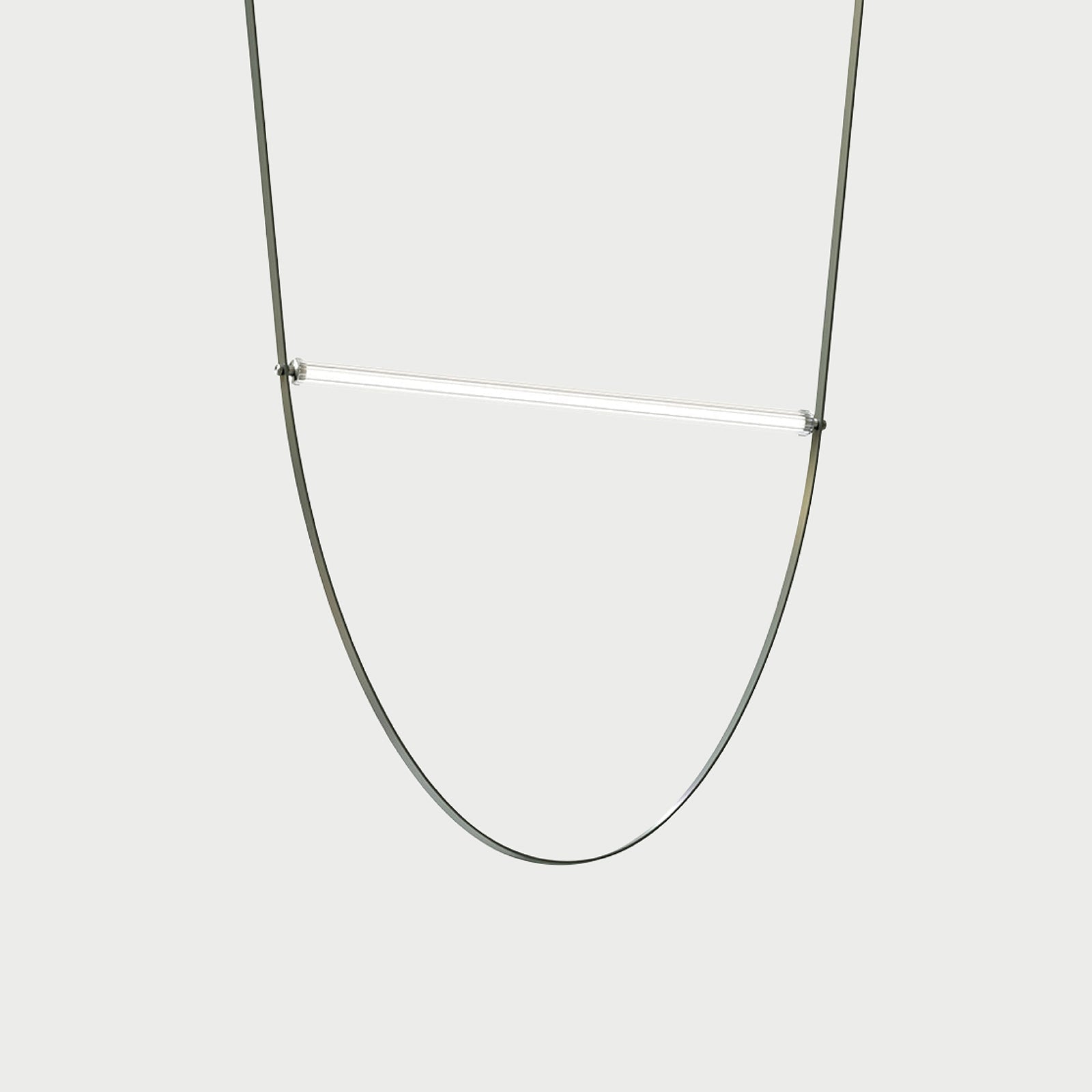 Suspension lamp with diffused light. Tubular in transparent extruded glass and internal diffuser in opal PC. Ferrules made with CNC technology in satin stainless steel. Extruded cable in pink and forest green rubber. Injection molded PC rosette in the same finishes as the cable. The electronics integrated in the ceiling rose allows the use of different dimerization systems: push, 1-10, potentiometer, DALI. In the absence of these systems, the luminous flux can be set during installation, with the push system included in the canopy. Useful length of the cable 3mt.
